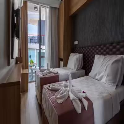 Verde Beach Hotel; şık ve modern tarzda dizayn edilmiş 64 oda, 130 yatak kapasitesine sahiptir. Standart deniz ve kara manzaralı olmak üzere 2 oda seçeneği mevcuttur. Odalarda; balkon, klima, minibar, saç kurutma makinesi, duşakabin, kettle, tv, banto,wc, banyo buket malzemeleri bulunmaktadır.